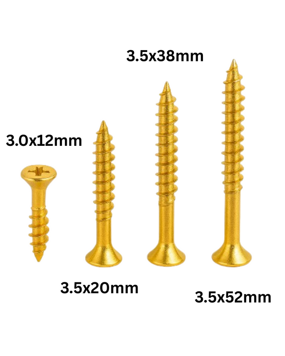 Wood Screws Assorted – Brass Plated (3.5x20mm, 3.5x38mm, 3.5x52mm)