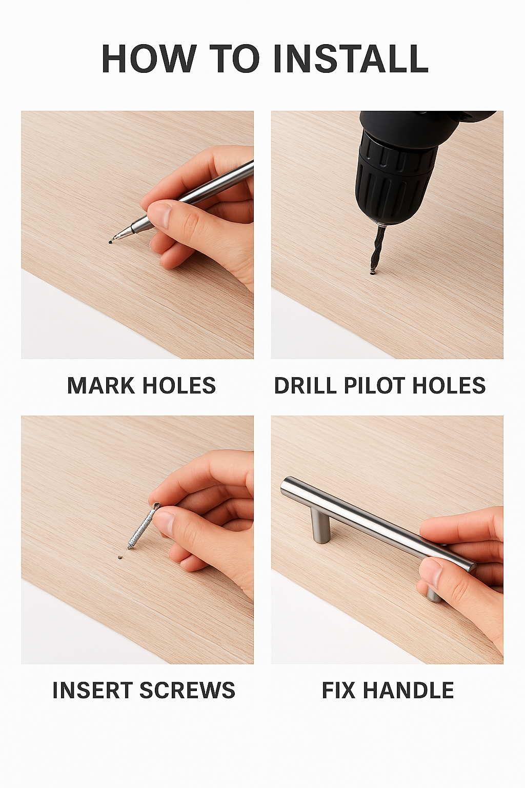 🔩 Premium 12mm Solid Stainless Steel – Strong, durable and corrosion-resistant satin finish ideal for kitchens, bedrooms and office furniture.