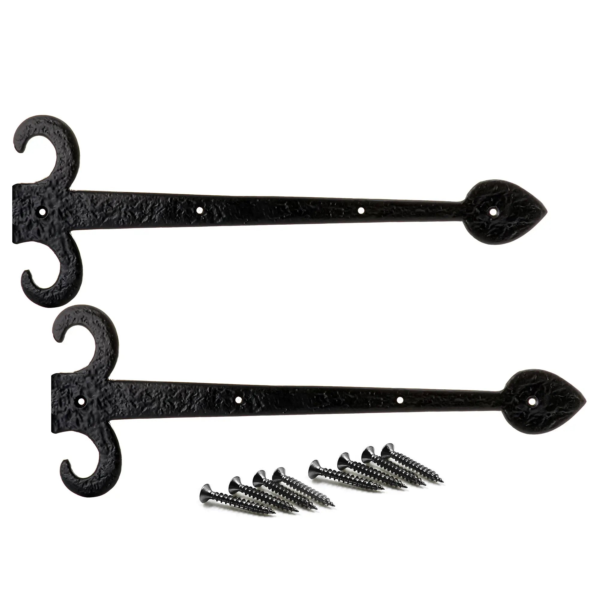 Featuring a classic spear tip design and black antique finish, they are perfect for period properties, cottages, barn-style doors, garage doors and rustic furniture projects. The 400mm strap length creates a bold visual statement while maintaining easy surface installation.