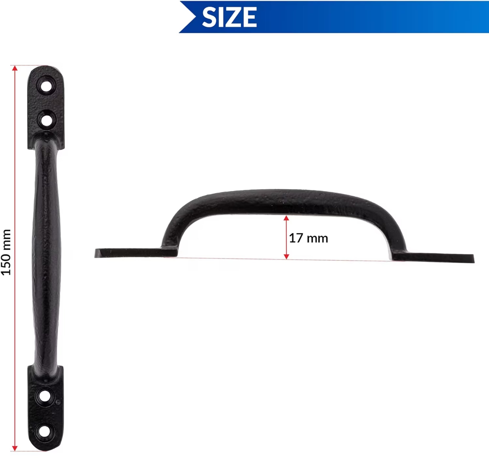 Available in two sizes – 100mm (4") and 150mm (6"), this heavy-duty handle is crafted from solid cast iron for durability and long life. The black powder-coated finish adds corrosion resistance, making it suitable for outdoor as well as indoor applications.