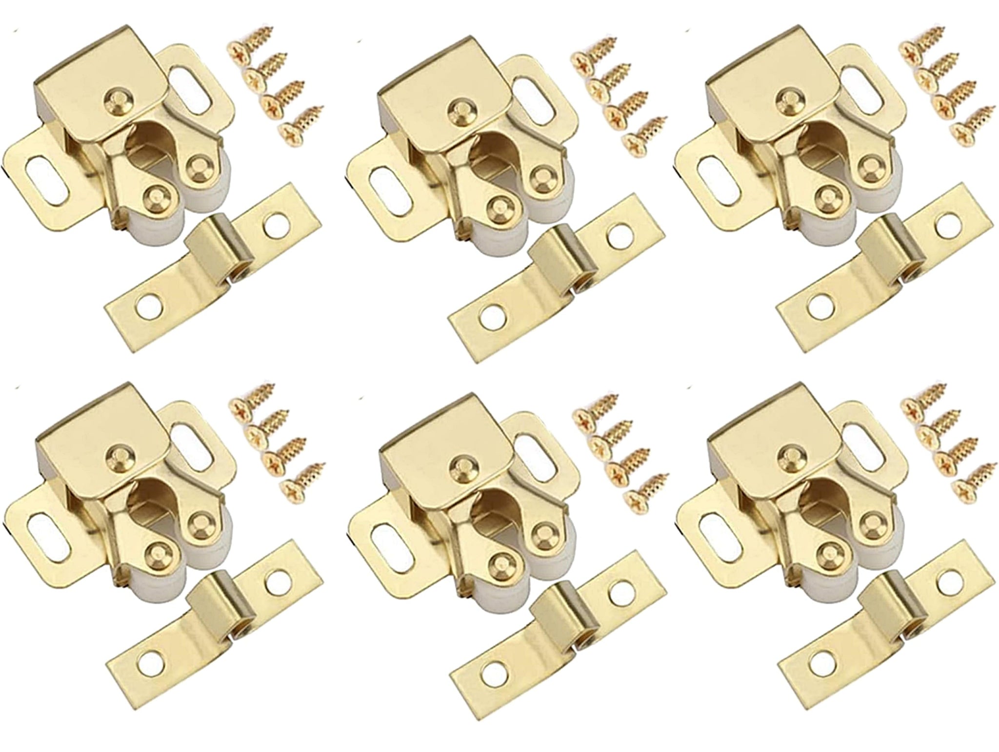 Each set includes the roller catch unit, strike plate, and mounting screws for quick and easy installation.