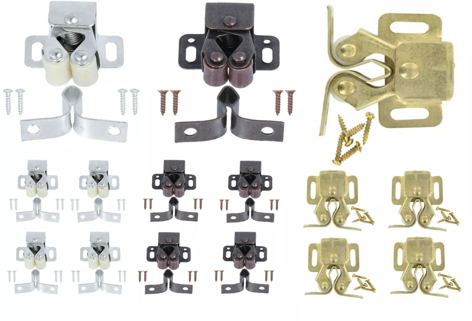 Double Roller Catch – Chrome, Brass, or Bronze Finish – Cabinet, Cupboard & Wardrobe Door Latch with Strike Plate