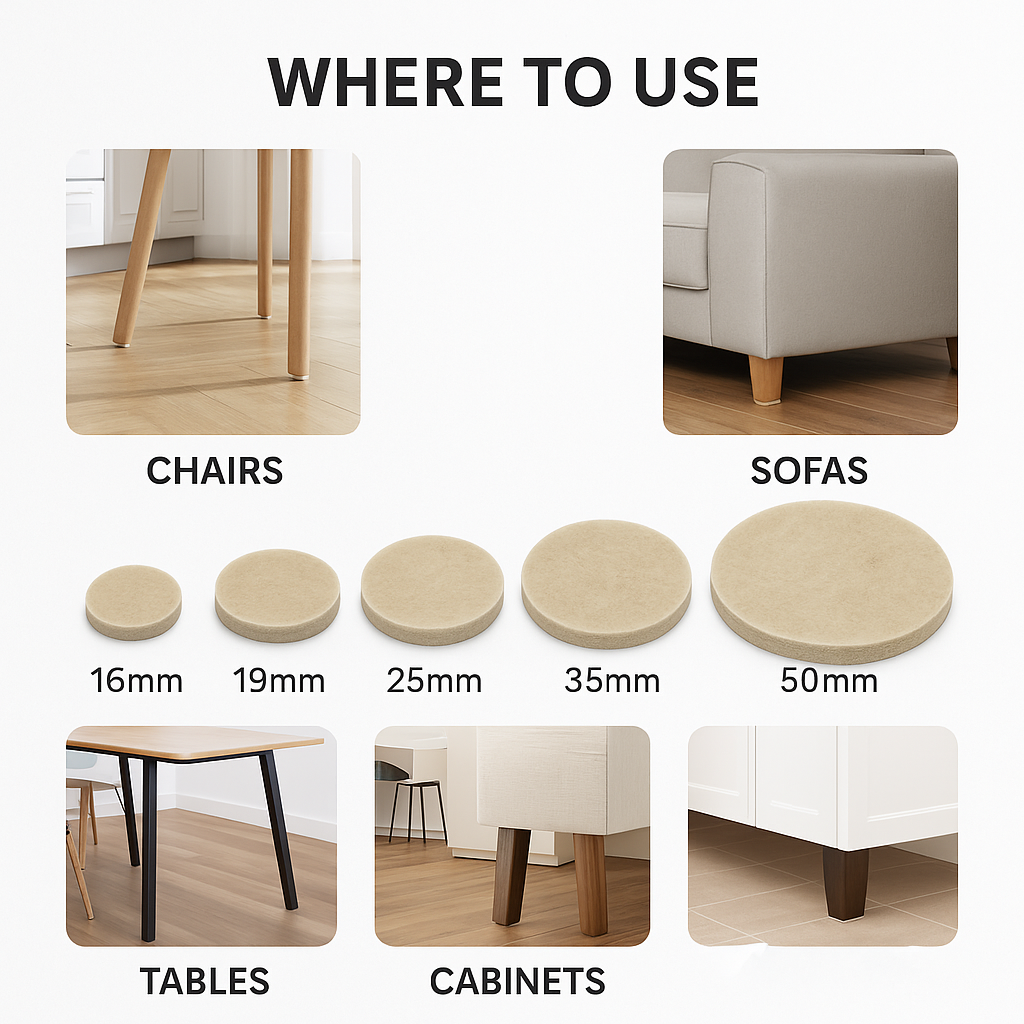 Felt Pads for Furniture β 16mm, 19mm, 25mm, 35mm, 50mm β Protect Floors & Prevent Scratches