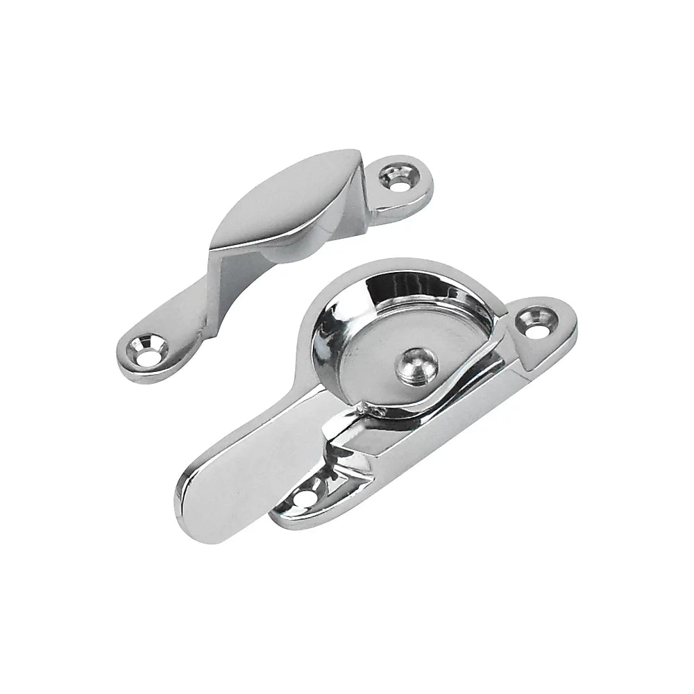 fitch fastener brass, polished chrome fitch fastener, sash window fastener, brass window catch, chrome sash fastener, diecast window lock, sash window latch, chrome plated window fastener
