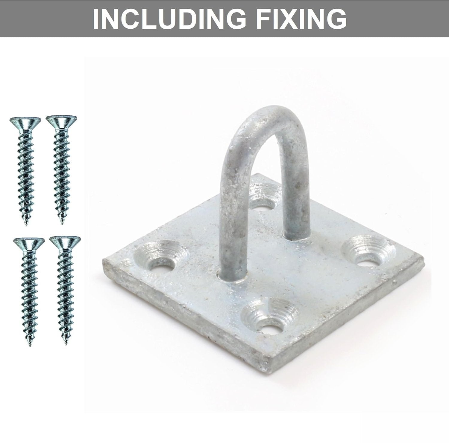 Galvanised Eye on Plate 50mm (2") Square – Heavy Duty Wall Mount Rope & Chain Fixing Eye Plate for Shed, Gate & Garage