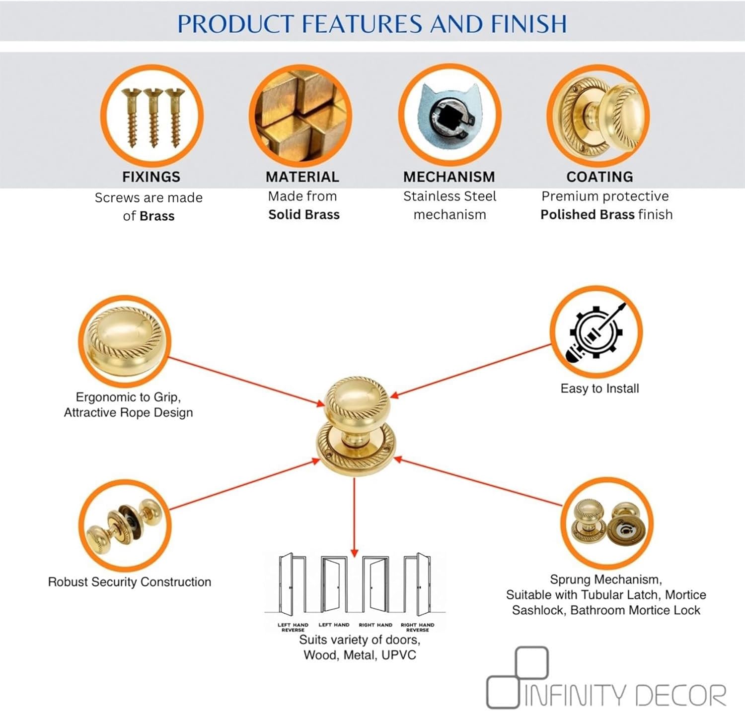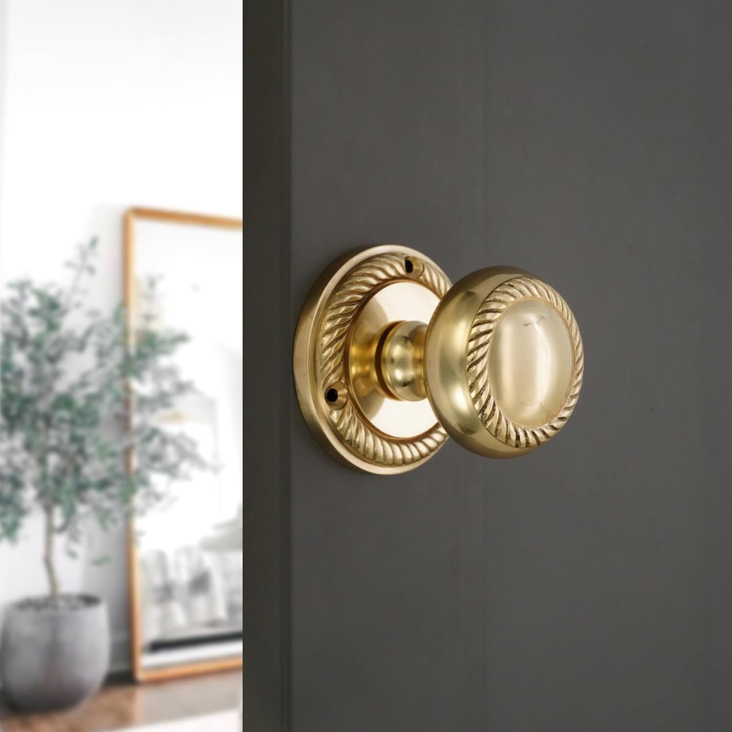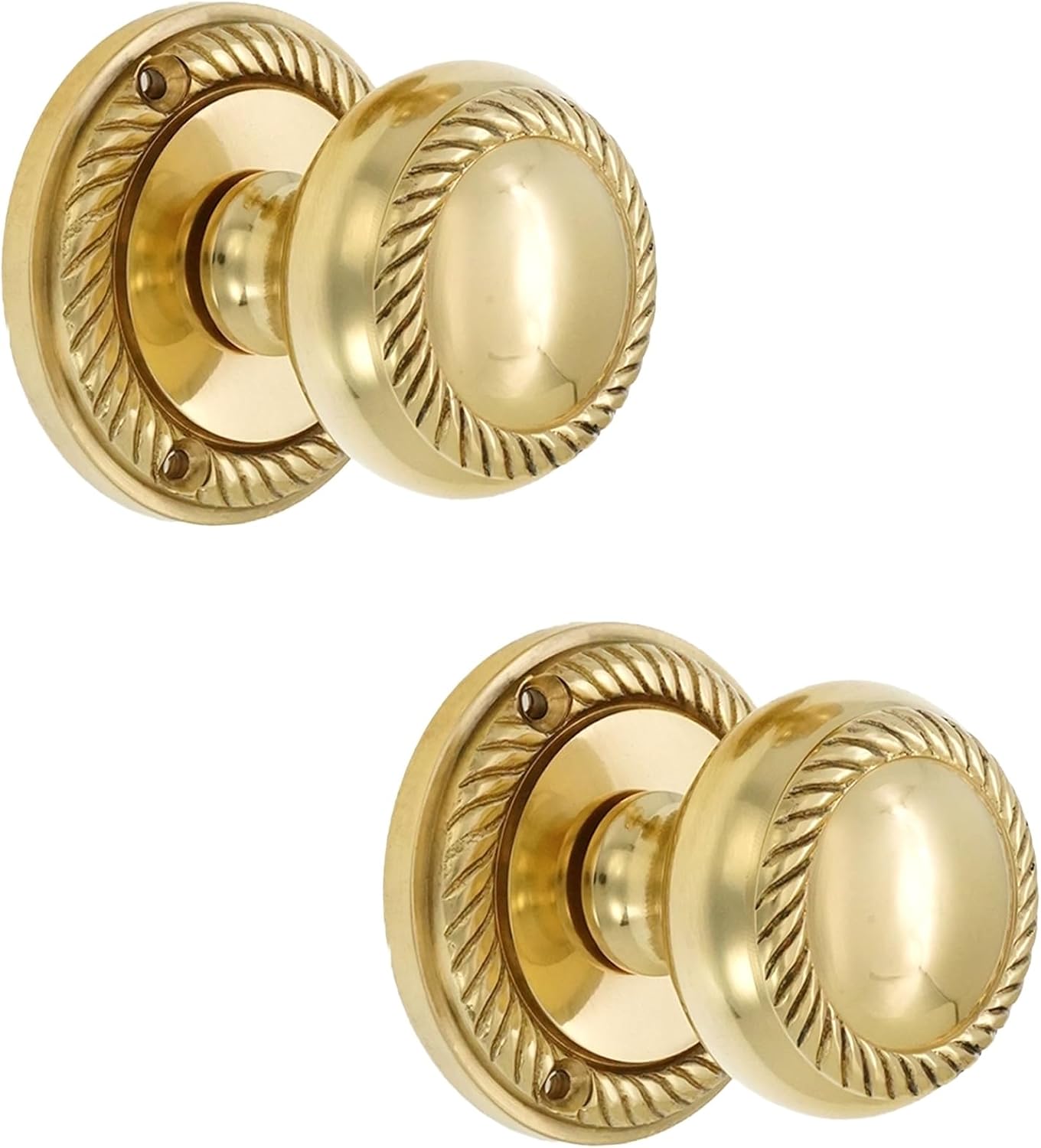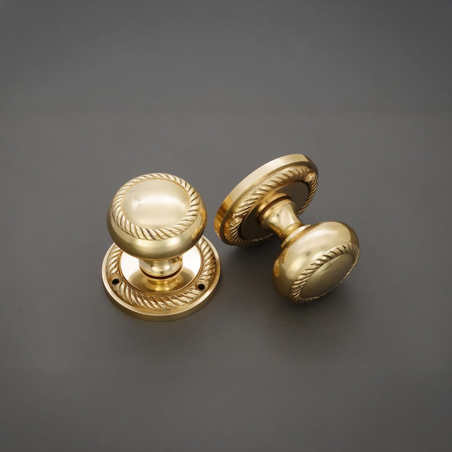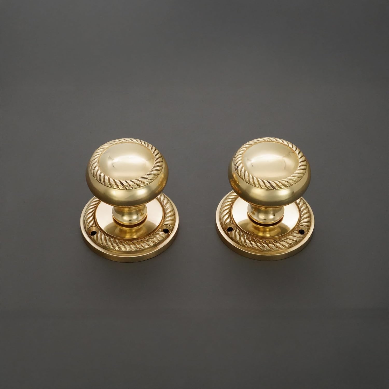 Georgian Round Solid Polished Brass Mortice Sprung Door Knob Set – Golden Grace Pair for Internal & External Doors