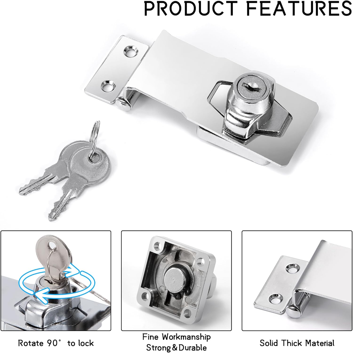 Hasp & Staple Locking Polished Chrome – 75mm & 115mm Heavy Duty Security Latch for Shed, Gate, Door, Cupboard