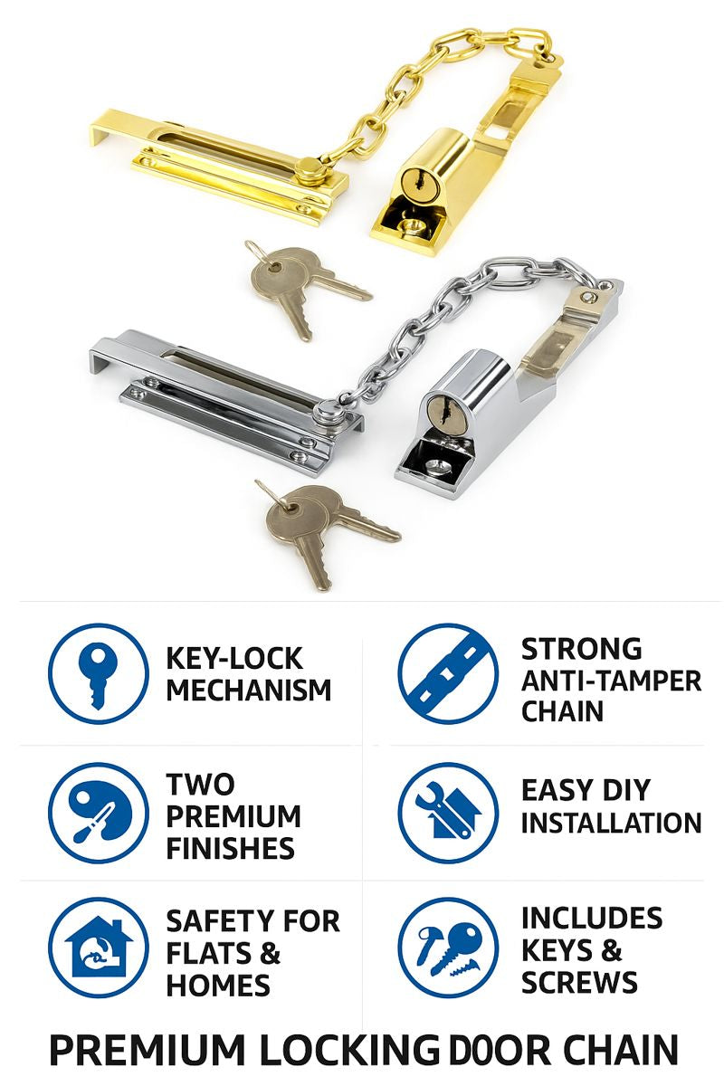 Perfect for homes, flats, rented properties and offices, this locking door chain offers peace of mind with a secure, stylish finish.