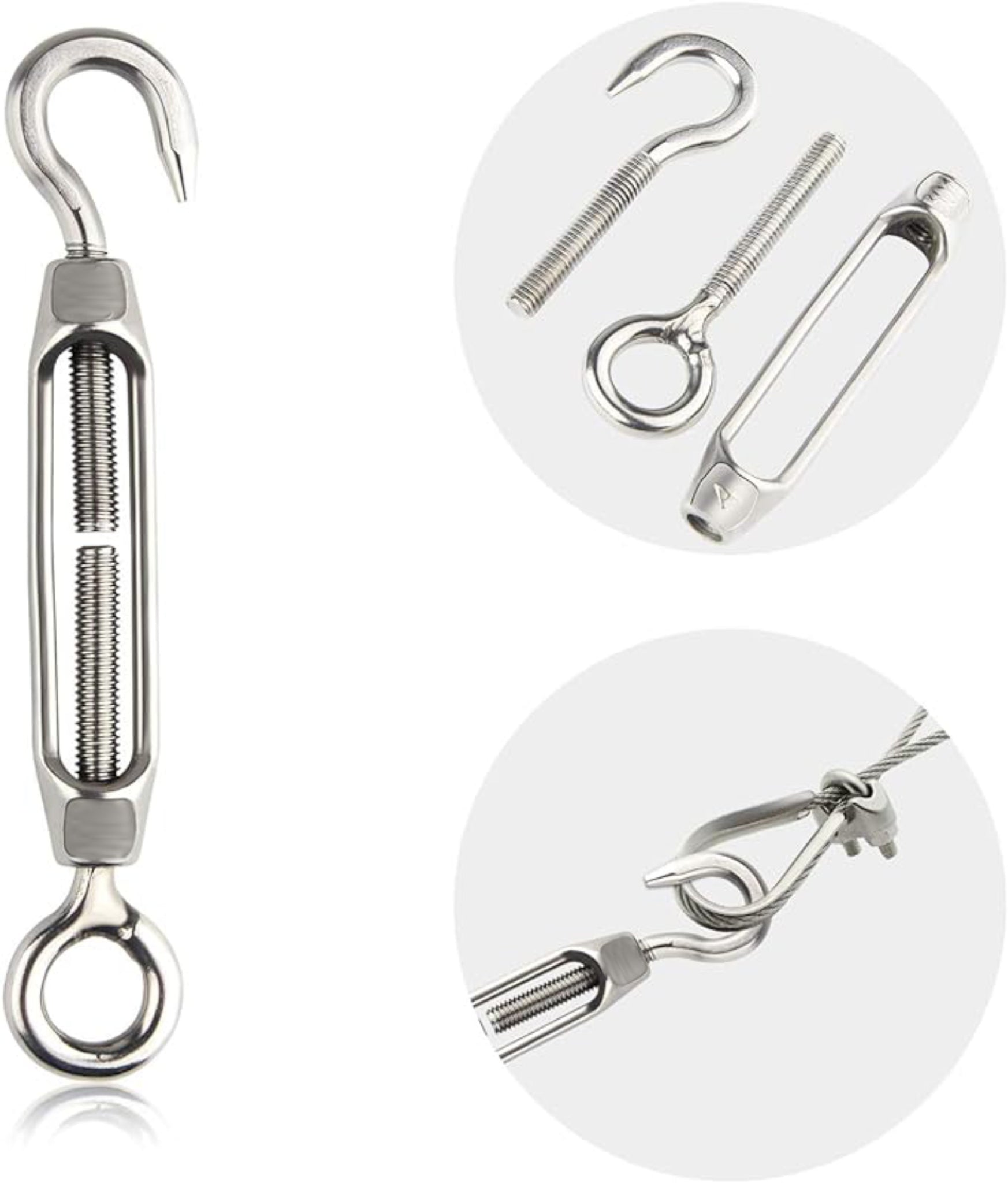 🔧 Hook & Eye Turnbuckle Design – Ideal for adjusting tension in wire rope, cable, chain and fencing lines.