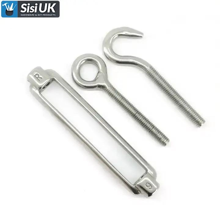 This Turnbuckle Wire Tensioner Strainer is designed for adjusting and maintaining tension in wire rope, cable and chain systems. Featuring a hook and eye configuration, it provides secure fastening and easy adjustment.