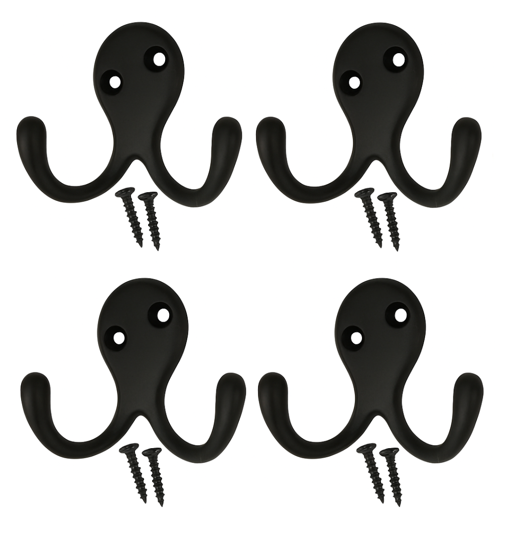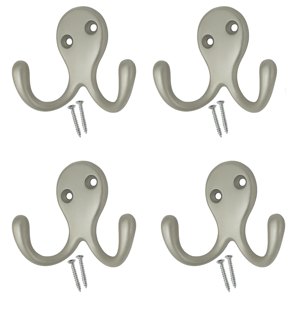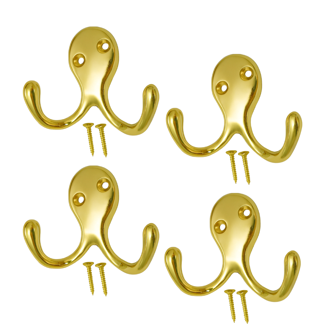 Upgrade your storage with these Twin Double Robe Coat Hooks, designed to provide both strength and style. The dual hook design allows you to hang multiple items at once, making them ideal for coats, robes, towels, hats and clothing.