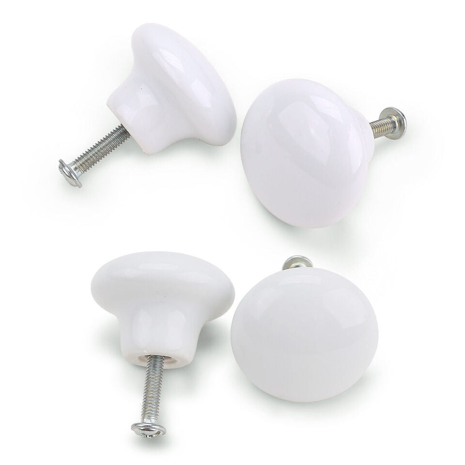 Ceramic Cabinet Knob 38mm White – Round Door & Drawer Knob with Fixing Screw for Cupboards, Wardrobes & Furniture