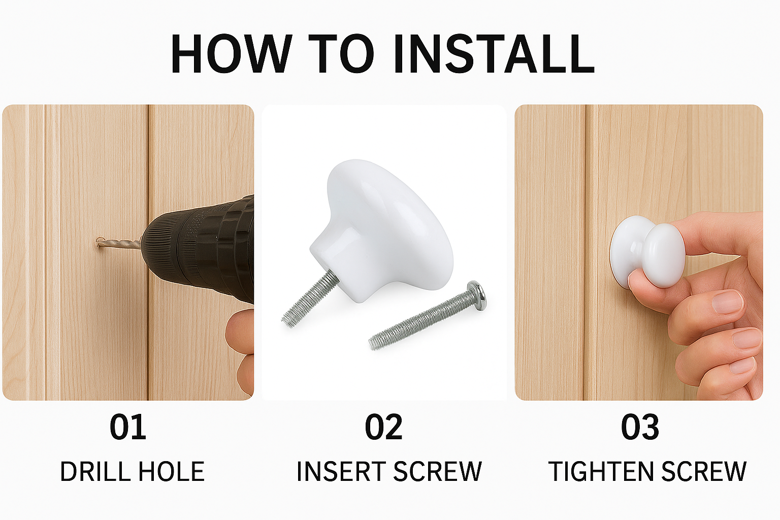 ⚪ Classic White Ceramic Design – Smooth, elegant 38mm round knob ideal for upgrading cabinets, drawers and wardrobe doors.