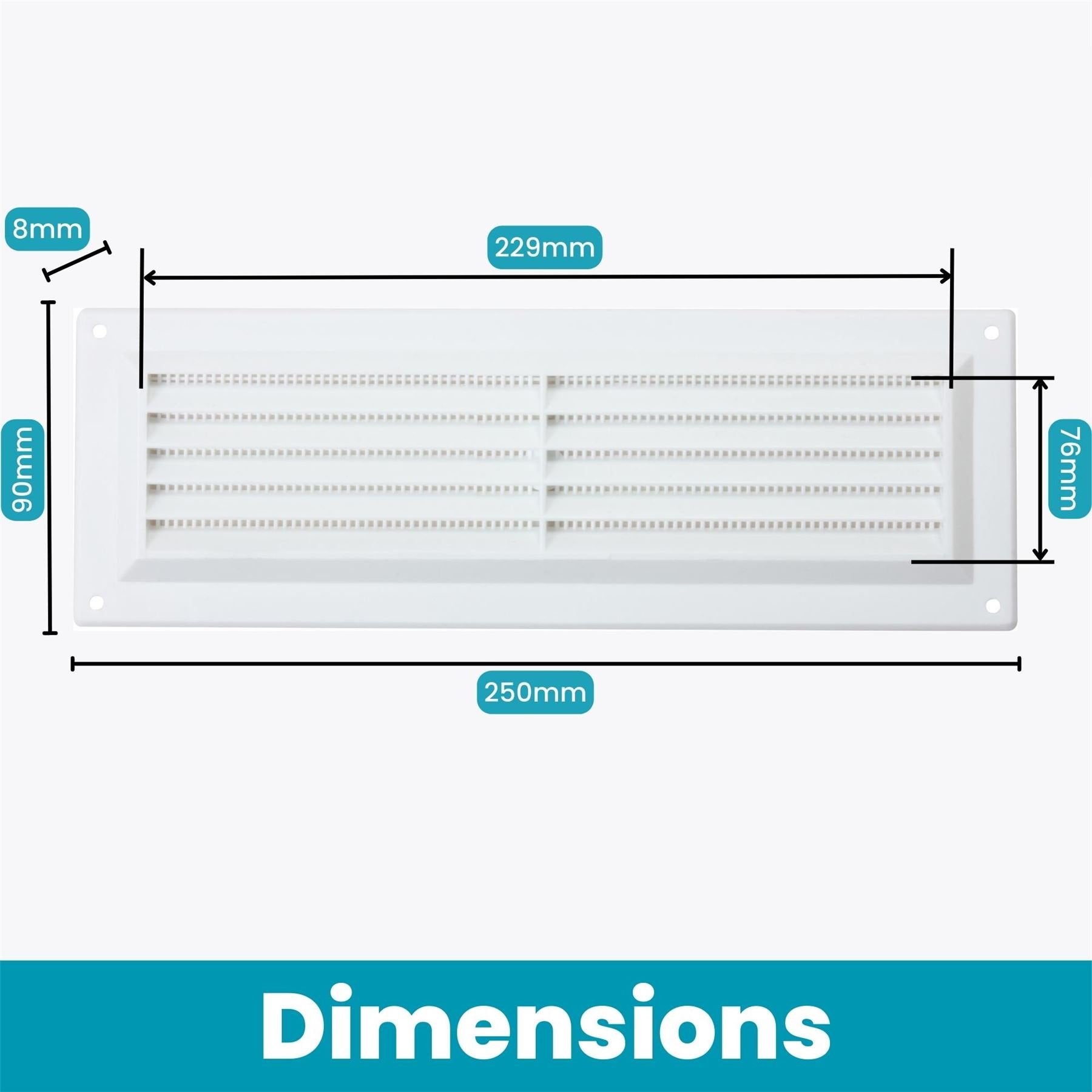 Available in 9"x3", 9"x6", and 9"x9" sizes, they are designed to fit standard openings in brick walls, cupboards, bathrooms, kitchens, and lofts. Installation is simple with pre-drilled fixing holes, making them a quick and effective ventilation solution.